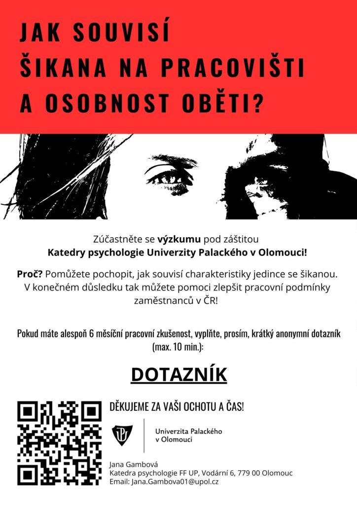 Šikana na pracovišti je bohužel stálý a častý jev v zaměstnání. Pracovníci z Olomoucké univerzity se mu věnují a rozhodli se šikanu zaměstnanců popsat a zmapovat. Pokud jste se s ní setkali, pomozte jim vyplnit krátký formulář, který může pomoci k její eliminaci.