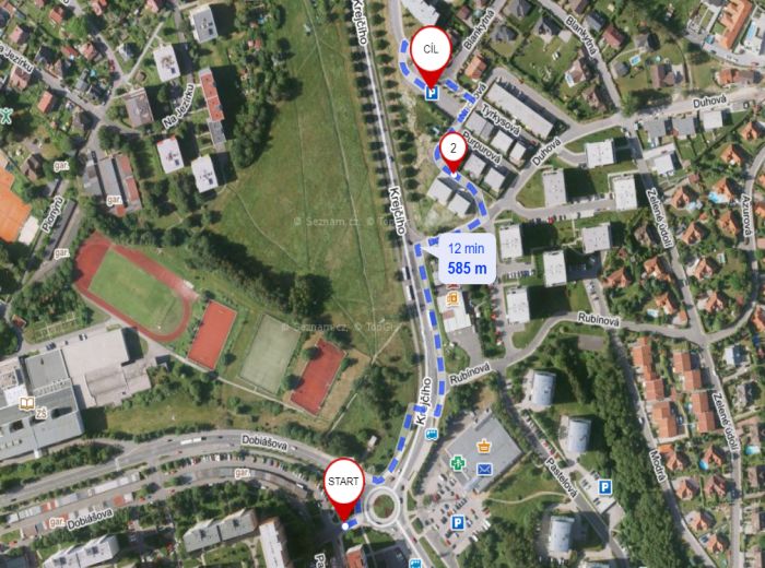Parkoviště se nachází necelých 600 m od sídliště, u ulice Krejčího, kapacitu má 40 míst. Obyvatelé nových bytových domů podél ulice Duhová mají dostatek míst přímo u svých domů a pro obyvatele samotného sídliště je parkoviště zjevně už moc daleko.[1]