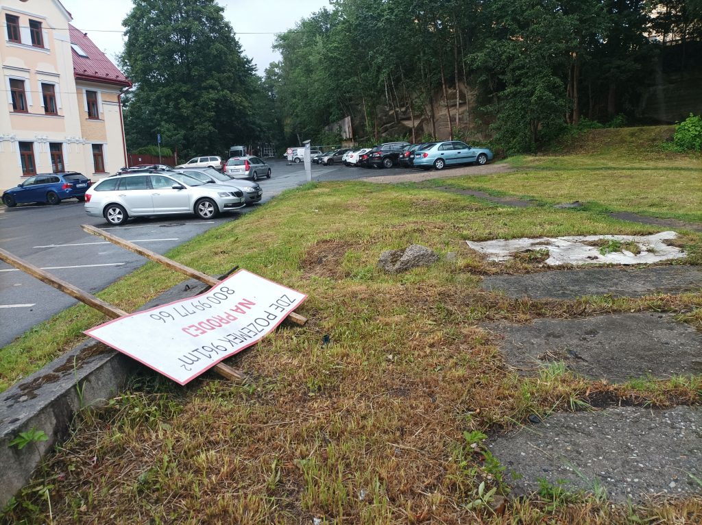 Péče o nabyté pozemky a starost o veřejný prostor. Radnice za čtyři roky ani neodstranila několik let starou ceduli, kde byly původně pozemky nabízeny k prodeji